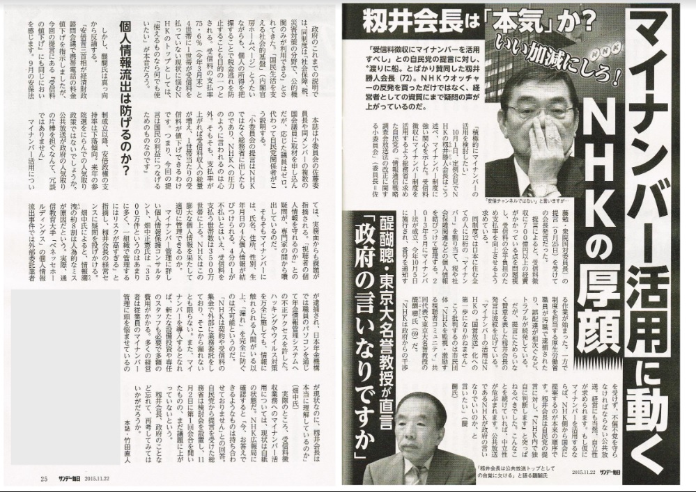 『サンデー毎日』に掲載されました。